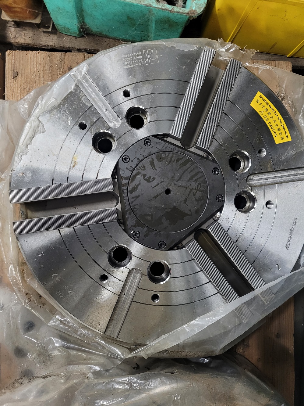 New 18″ Hydraulic Chuck with Back Plate. model: N-218. Auto Strong brand. Taiwan made. Our Price $5,950. (New price $7,800)